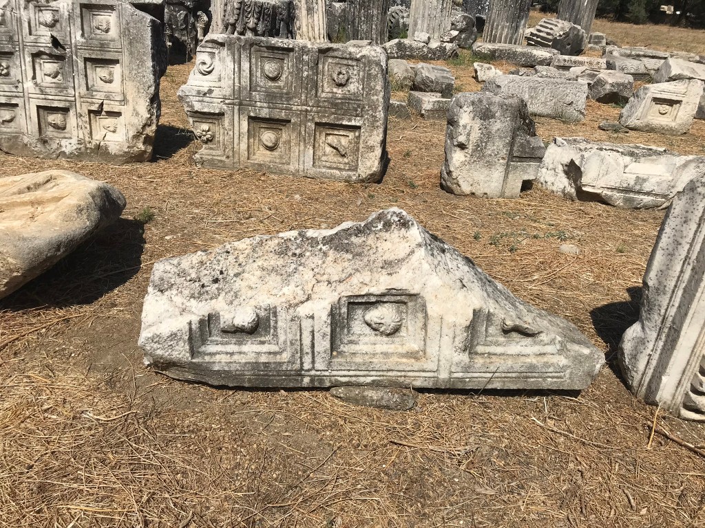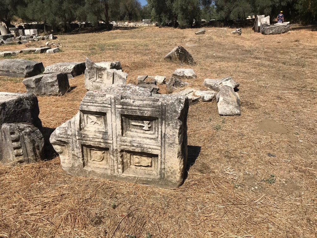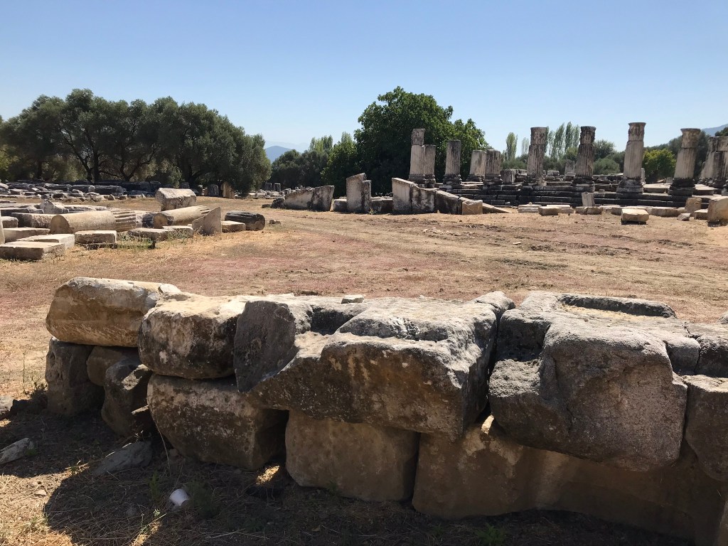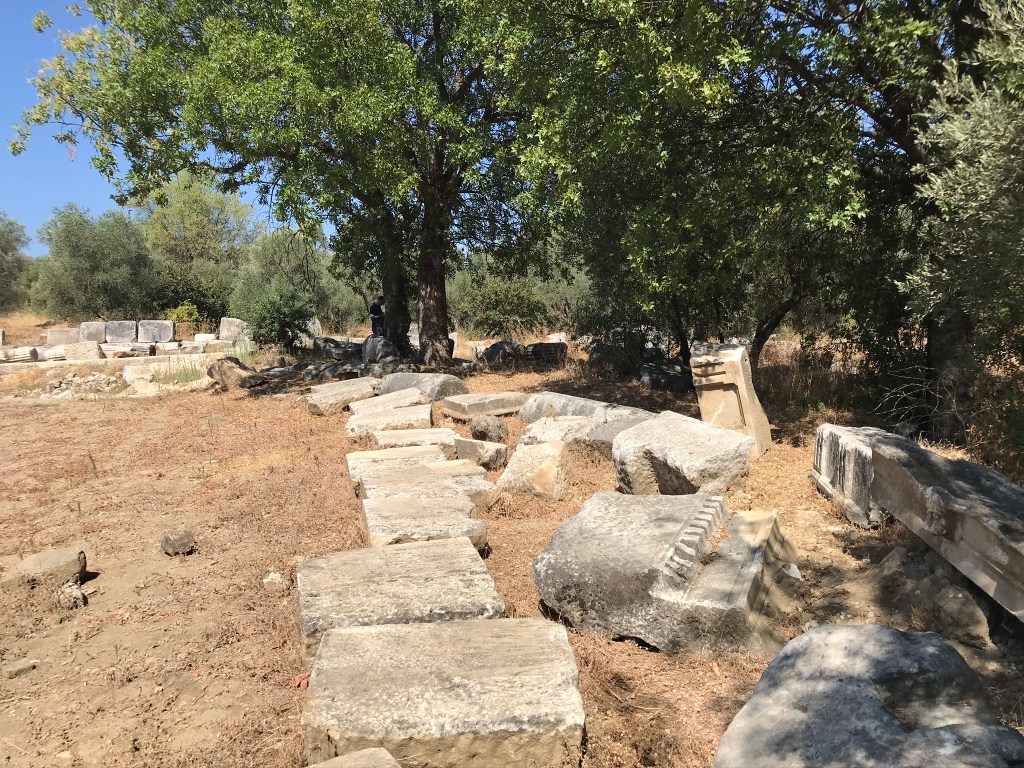 I did not expect such a large area of the city. From Stratonikea to Lagina, the temple complex of Hecate, there was a sacred road. The distance between Lagina and Stratonikea is 8.5 kilometers. Scientists estimate that the road is at least 3000 years old. The inhabitants of Stratonikeia, during the ceremonial processions, left and moved along the sacred path to Lagina. A girl with a key took part in the cult processions along with the priests. Musicians and singers walked in front and behind the priests. The key was considered an attribute of Hecate. The goddess Hecate was portrayed with a key, torch and sword. The key may have symbolized the passage to the higher worlds, to the transcendental paradise, to the world of the dead. One of the names of Hecate “Clydophora” – the keeper of the gates, another “Propylaea” – the gatekeeper with the keys. In the Orphic hymn, Hecate is called “Keeper of the Universe”. Small sanctuaries of Hecate were built for protection. They were called “hecateion”. The road went through the gate to the temple of Hecate. There were household and commercial buildings around the temple. The lagina is surrounded by a stone wall, the remains of which are still visible here and there. The semicircular entrance to Propylon was on the west side. To the east of the entrance was a section with a triangular pediment.