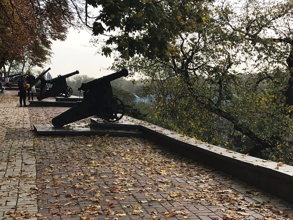 The cannons are on the paved red carpet. The red carpet was laid where the walls of Detinets were. Further on is the house of Lizogub, which later passed to Mazepa.
