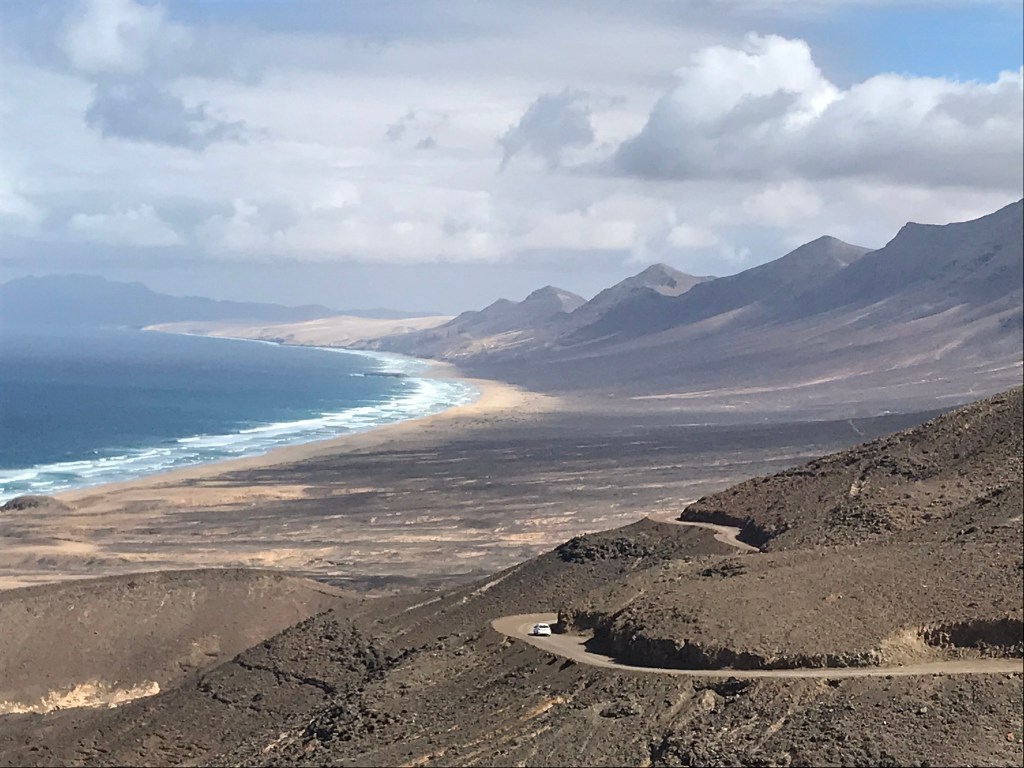 The closer to Winter’s house, the stronger the wind blows. Imagine an island in the Atlantic Ocean, one side looks at the African continent, the other at the European one. Fuerteventura has an elongated shape. At the junction of the warmer ocean from the side of Africa with the cold, on the other hand, the wind always blows, always the waves knocking down, even in calm weather. It has its own charm – a seething ocean, wind, black rocks.