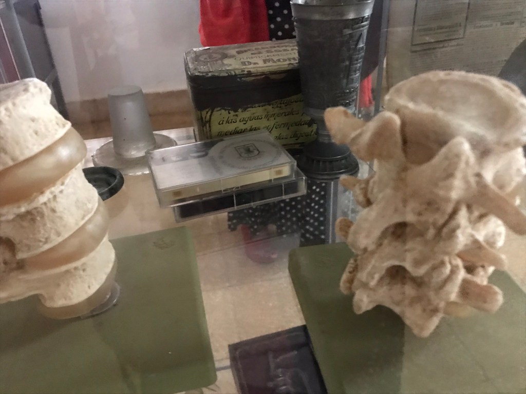 and caps, pieces of the human spine, flasks, pharmacy type.