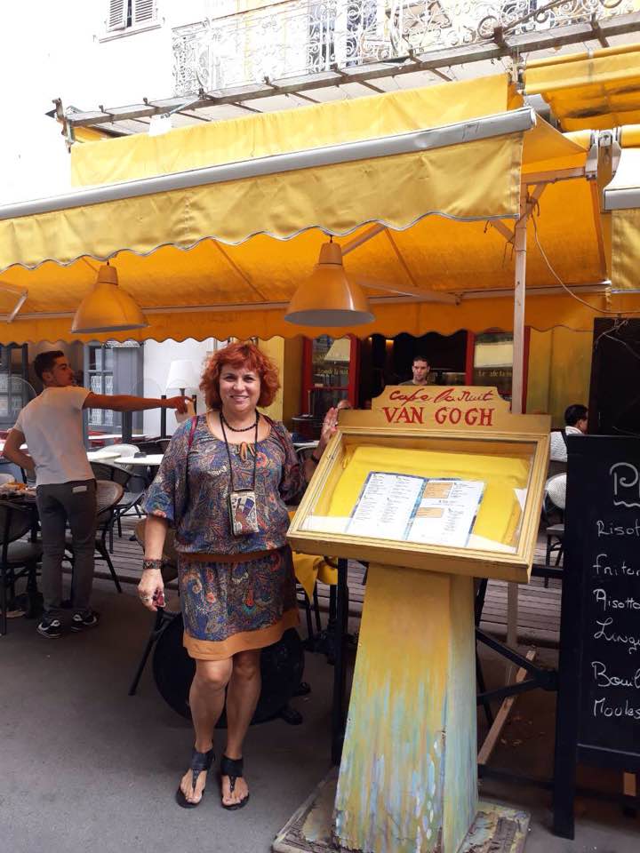 Suddenly, we get to the square with the famous yellow cafe Van Gogh. We could not get past such a place. We drank coffee in a famous place. I would not say that there is something special here. As always, the ubiquitous people of Chinese appearance were sitting at the adjacent tables, homonizing and creating a crowd.