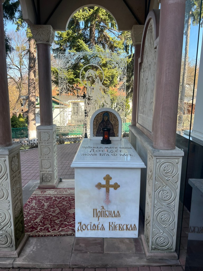 It is opened on certain days and hours. Near it there is a gazebo with the relics of Dositheus – a woman who was considered a man in life. She lived in a cave inside the mountain. The holy canal is active.