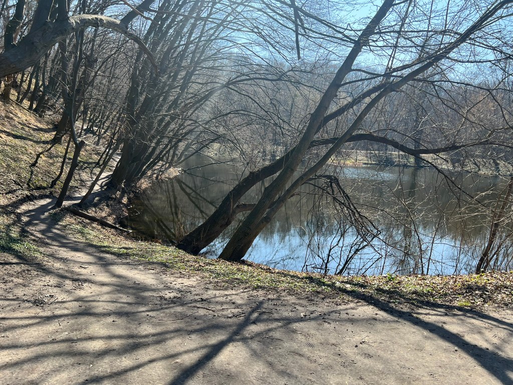 The Holy Protection Monastery sparkled with golden domes crowning the temple buildings made of new red bricks. To the right, before reaching the entrance to the main monastery, there was a place of residence and a temple where Mother Alipiya was reburied. The Goloseevskaya Pustyn is a skete of the Kiev-Pechersk Lavra, located in the forest on the southern outskirts of Kyiv. Monks lived here in the 18th-19th centuries, and since the second half of the 19th century, the residence of the Kyiv metropolitans was located here. In the 1950s – 1960s, the churches were dismantled as having no artistic value. Now all the temples here are new. Everything looks beautiful, but this is not what I am looking for in my travels to places of power. I appreciate antiquity, history, natural energy flows, unusual places where you can get a new experience. We drank hot tea in the monastery cafe. We bought some monastery wine, called a taxi to the metro and departed quickly and safely. On March 20, on the day of the spring equinox, we set off for the Holy Trinity Kitaevsky Monastery and the historic mountain next to it. We arrived from the Demeevsky bus station by minibus. We passed by an ancient cemetery and the white temples of the Kitaevsky Monastery opened up before us. I was struck by the energy of this place – an island of ancient Kievan Rus and faith. The area was inhabited by people as early as the 3rd-2nd millennium BC. At the beginning of the 20th century, amateur archaeologist Ertel suggested that the settlement of “Kuyava” mentioned in Arab sources, which preceded Kyiv, was founded here. The monastery is surrounded by lakes and hills from the east and south. One of the hills is called Kitay-gora. There are caves there, there is an archaeological complex from the 9th-13th centuries – a burial mound and settlements on the bank of a stream. Historians identify this complex with the southern outpost of ancient Kyiv – Peresechino. Accordingly, the name “Kitaevo” most likely comes from the word “Kitai”, which means “fortress”.